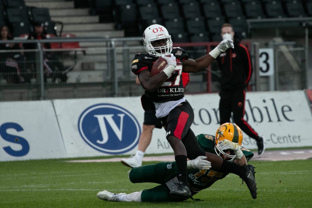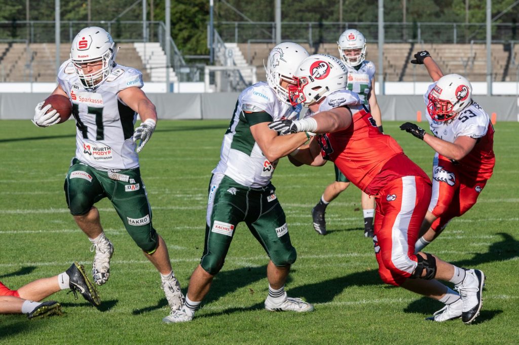 Saarland Hurricanes vs Ravensburg Razorbacks 14:7 / 0:0 /3:0 /10:8 Endstand 27:15 In einem Spiel in dem es für Ravensburg noch um die Playoff Teilnahme ging und die Canes ihren zweiten Platz bereits sicher hatten, begannen die Gäste mit dem Kickoff, dieser wurde von Chaz Elder aufgenommen. Bereits zu Beginn wurde der Vorwärtsgang eingelegt , […]