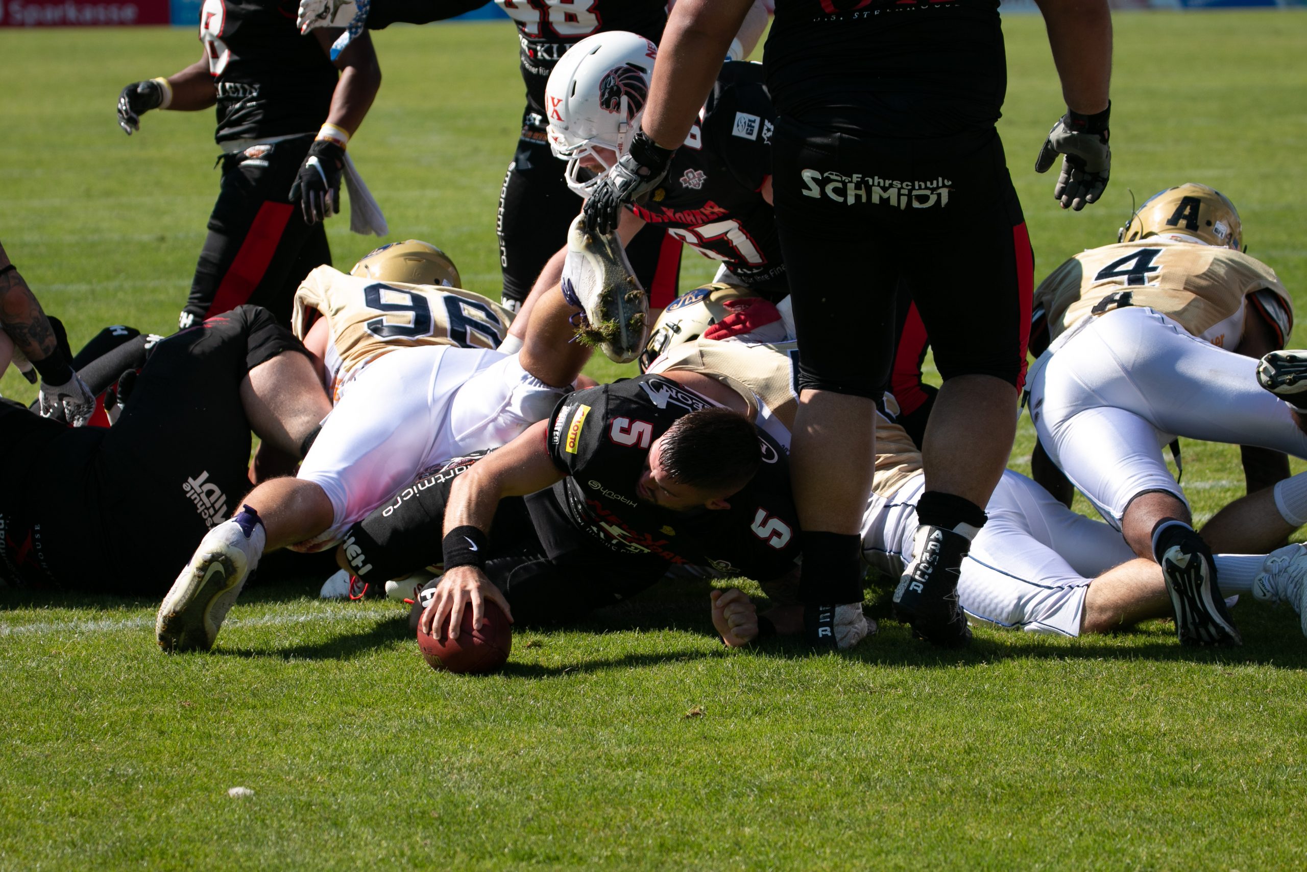 New Yorker Lions, in einem phasenweise hochklassigen Spiel, den Dresden Monarchs knapp mit 24:19