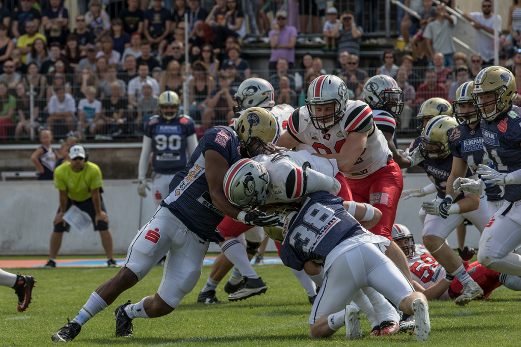 Die Dresden Monarchs haben sich mit einem Sieg aus der Sommerpause zurückgemeldet. Allerdings bedurfte das über weite Strecken des Spiels gegen die bisher sieglosen Huskies aus Hamburg deutlich mehr Arbeit als von vielen gedacht (7:3/13:7/14:0/7:7). Letzter Feriensonntag im angenehm temperierten Dresdner Heinz-Field. Knapp Zweieinhalbtausend Fans hatten, kurz vor dem Ende der sächsischen Urlaubszeit, nochmal Lust […]