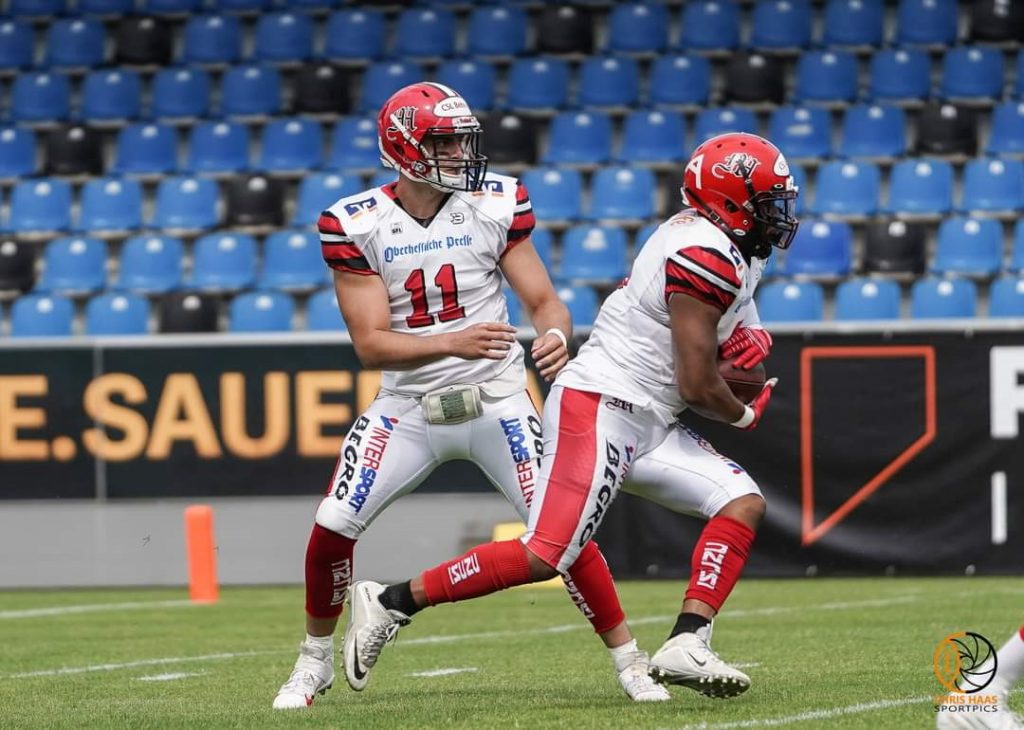 Die beiden Mercenaries Runningback Marcus Cox und Defense Back / Returner Marvin Hart sorgen mit vier bzw. zwei Touchdowns für den klaren 42:12 Auswärtssieg gegen Frankfurt Universe. Die bislang sieglosen Frankfurter hatten sich vor diesem Spiel kurzfristig noch hochkarätig verstärkt. Als Quarterback wurde Clen Cuilette verpflichtet, der 2019 die Dresden Monarchs bis in das GFL […]