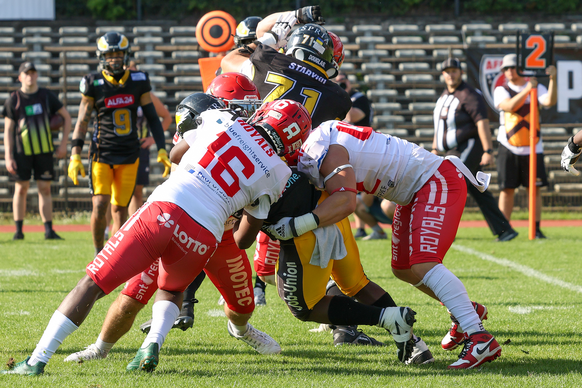 Immer noch kein Ergebnis, das einer Footballmannschaft Angst machen sollte. Und im Schatten der bisherigen Royals-Saison nur als großartig bezeichnet werden kann. Aber es zeigt andererseits auch, dass die Royals völlig zurecht Tabellenführer und einziges ungeschlagenes Team in der Erima GFL sind – sie finden eigentlich immer eine Möglichkeit Punkte zu erzielen.