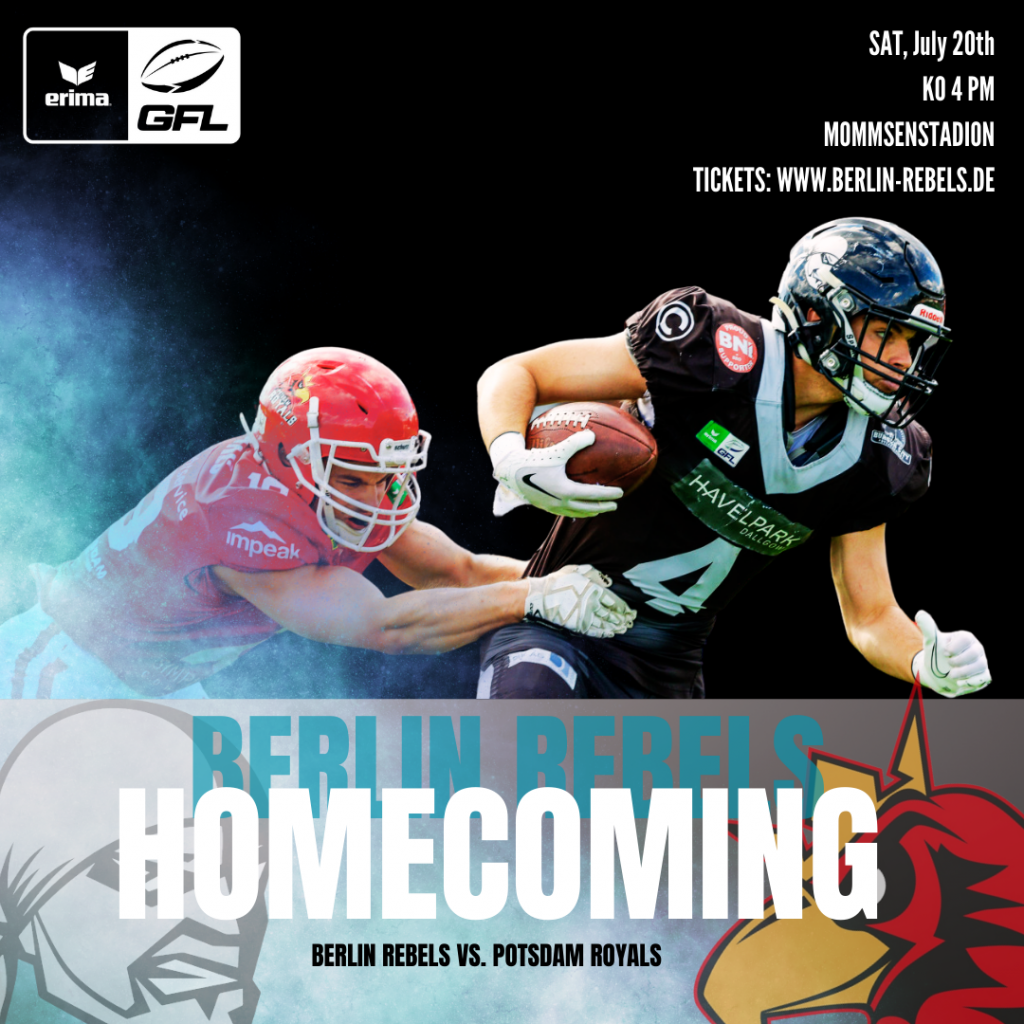 Die Berlin Rebels GFL Seniors kommen endlich wieder nach Hause ins Mommsenstadion. Nach Sanierung und Nutzung als EM Trainingsstätte, ist das Mommsenstadion ab dem 20.07. wieder Spielstätte für American Football in Berlin. Wir laden ein zum Home Coming Game! Und zwar nicht nur euch, sondern auch die Potsdam Royals. Ja zugegeben die erste Saisonhälfte lief […]