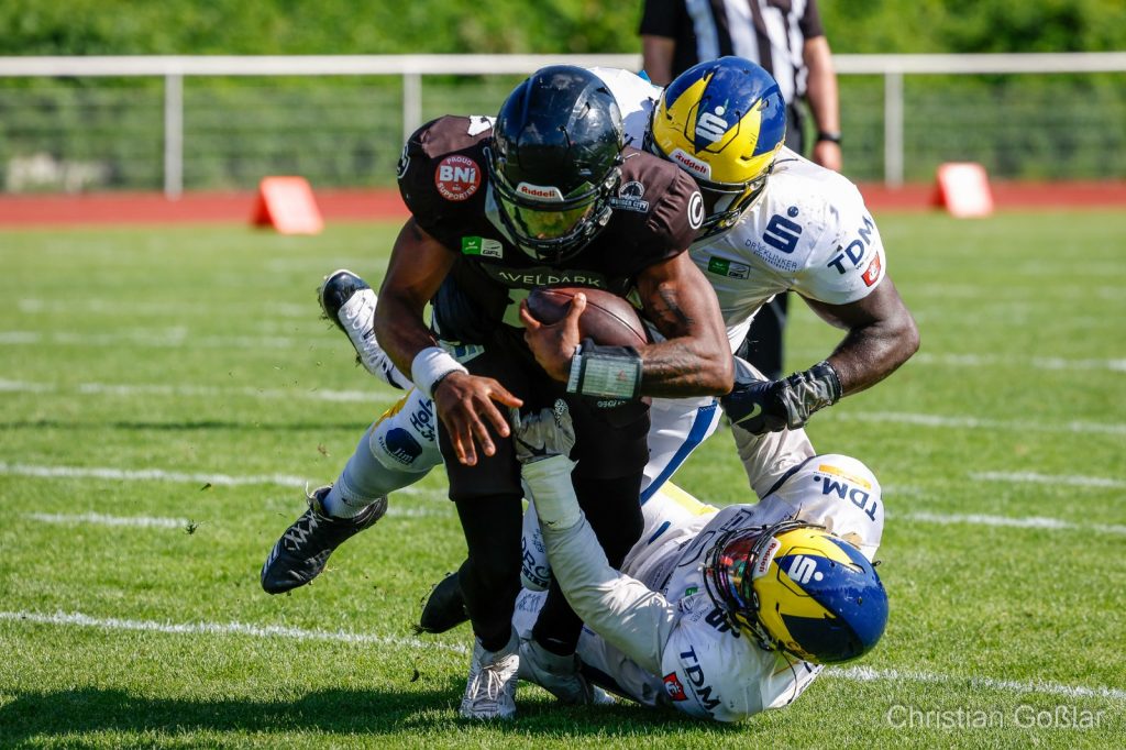 Was für ein Footballkrimi zum Saisonstart! Nach einer eher niederschmetternden ersten Halbzeit, in der die Fans im Stadion schon nicht mehr an einen Sieg geglaubt haben, schaffen die Hauptstädter das Comeback und gewinnen die Partie knapp mit 39:38. Wermutstropfen auf Seiten der Saarländer sind die teilweise schweren Verletzungen der Spieler, denen wir eine schnelle Genesung […]