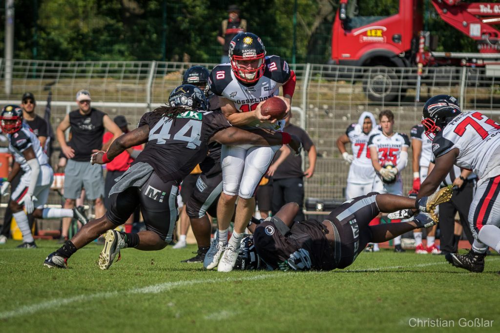 Lang hats gedauert aber da ist er endlich, der Sieg. Der war aber nun auch bitter nötig. Mit einem souveränen 55:13 besiegen die Berlin Rebels die Düsseldorf Panther. Das Duell im Tabellenkeller und beide Teams brauchten den Sieg. Eins hat ihn sich geholt und zwar sehr souverän und eigentlich von Anfang an nicht gefährdet. Den […]