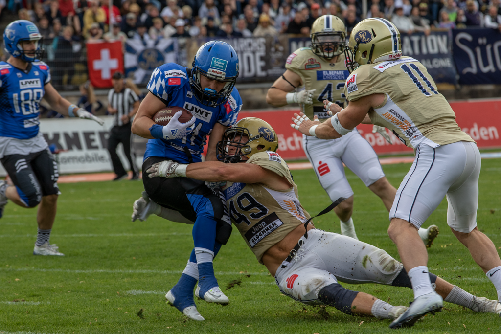 Zum vierten Mal in fünf Jahren mussten die Dresden Monarchs zu einem Halbfinalspiel zu den Schwäbisch Hall Unicorns reisen. Und zum vierten Mal verloren sie diese Herausforderung. Die meisterlichen Einhörner gewannen am Ende verdient mit 23:7 (14:0/2:0/0:7/7:0). Ein „Murmeltier“-Gefühl der besonders unangenehmen Art: da kämpft man eine ganze Saison um am Ende ins fränkisch- badische […]