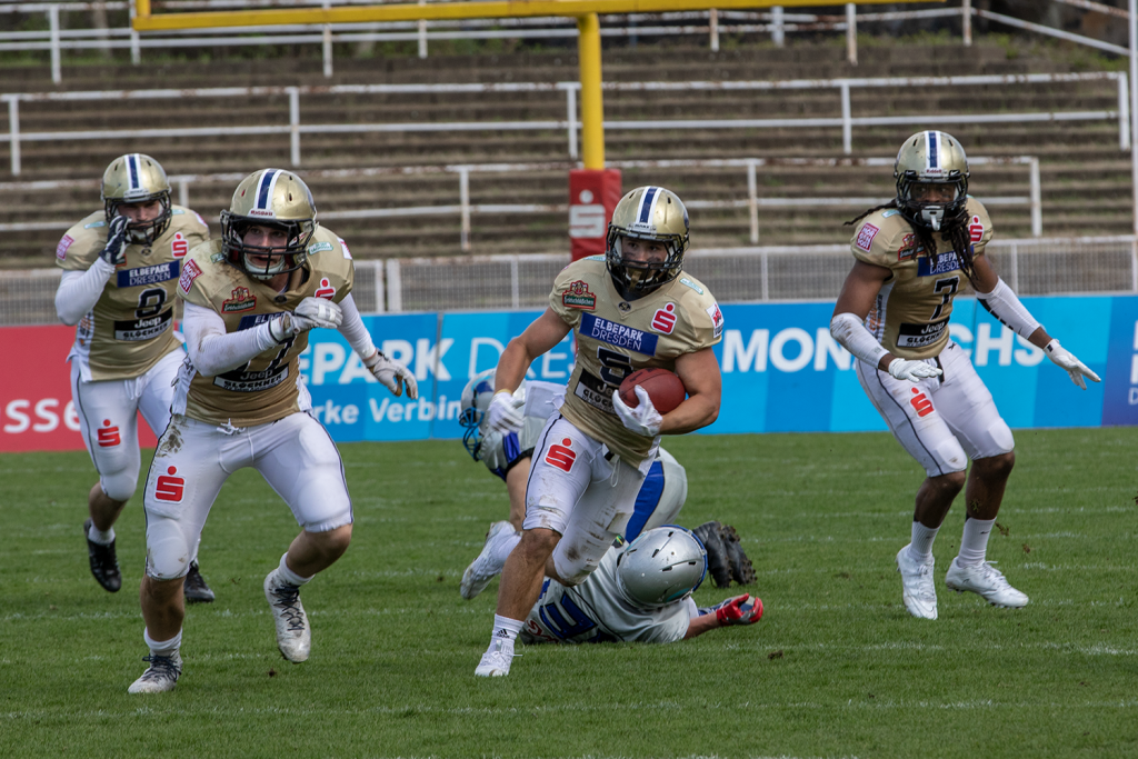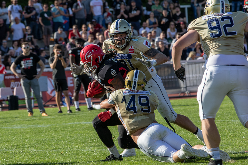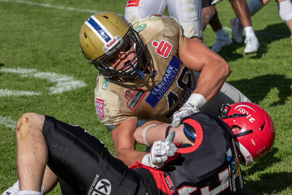 Die Dresden Monarchs haben auch ihr zweites Saisonspiel gewonnen. Wieder hieß der Gegner Potsdam. Wie schon im Hinspiel vor einer Woche gingen die Sachsen am Ende als Sieger vom Platz – 42:24 (7:7/7:17/21:0/7:0) Im Sport, gerade wenn ein Ball im Spiel ist, gibt es ja viele Binsenweisheiten. Wichtig ist auf dem Platz, ein Spiel hat zwei Halbzeiten, wann Schluss ist entscheidet der Schiedsrichter und […]