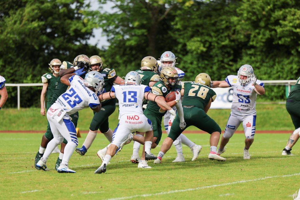 Ein hart erkämpfter Sieg war es, den unser Team um Headcoach Michael Treber am gestrigen Sonntag in Albershausen erringen konnte. Gegen den Mitaufsteiger aus Baden-Württemberg wurde das Spiel erst in den letzten Minuten des vierten Viertels entschieden. Dieses Mal zu Gunsten unserer Jungs in Grün und Gold. Doch der Reihe nach. Zu Beginn des Spiels […]