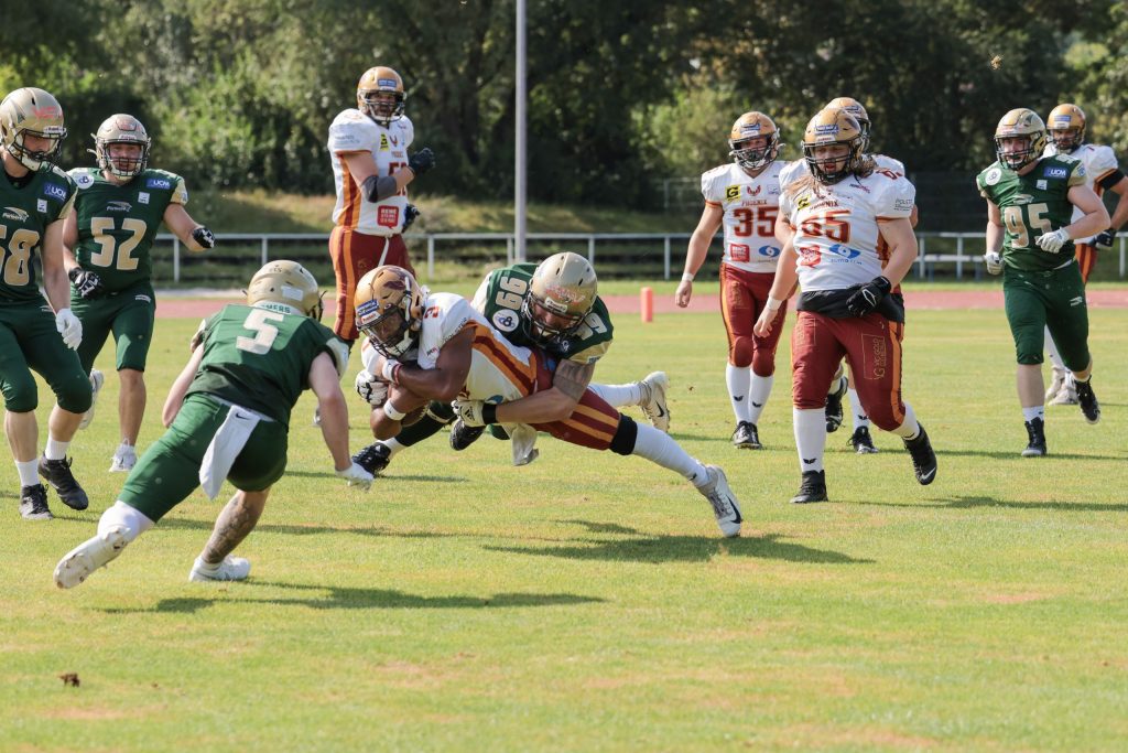 Die Montabaur Farmers haben ihren fünften Sieg der GFL 2 Saison 2024 errungen, indem sie die Regensburg Phoenix mit 24:20 besiegten. Trotz einer durchwachsenen ersten Hälfte gelang es den Farmers, das Spiel zu drehen und sich für die Niederlage im Saisonauftaktspiel zu revanchieren. Im ersten Quarter hatten beide Teams Schwierigkeiten, ins Spiel zu finden. Die […]