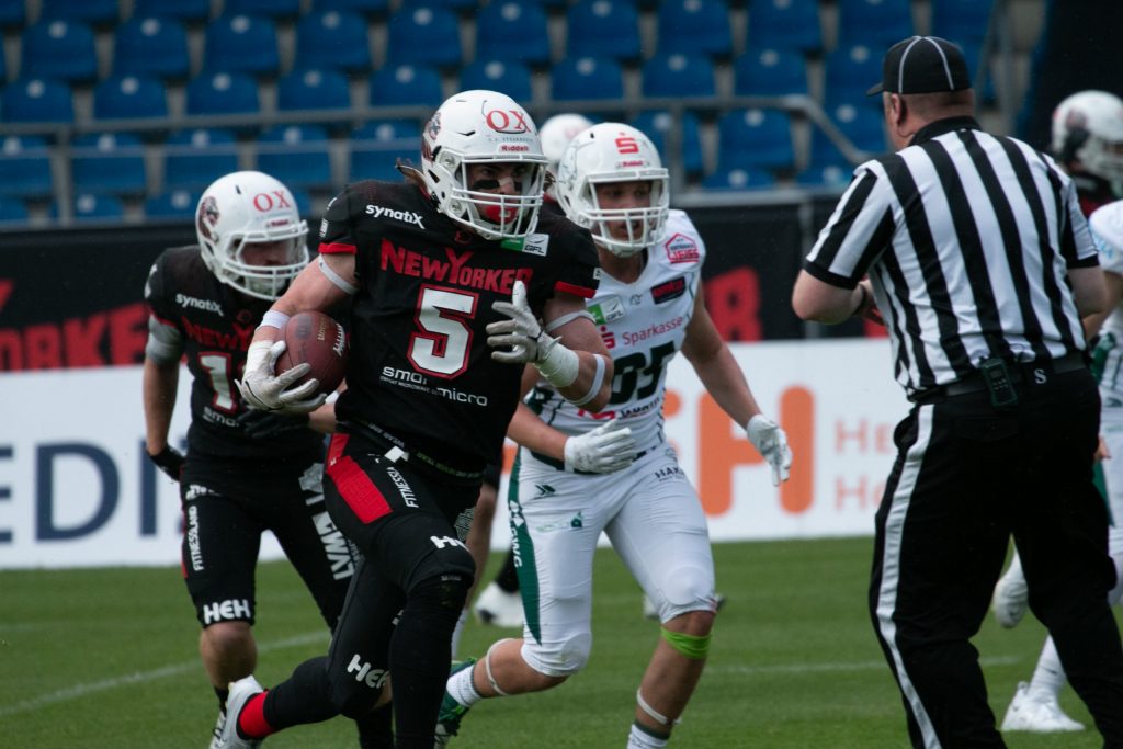 Vor etwas mehr als 2.000 Zuschauer im Potsdamer Karl-Liebknecht-Stadion, verlieren die New Yorker Lions ihr erstes Spiel der Erima-GFL Saison 2023, gegen die Potsdam Royals, mit 40:33 (8:7; 16:14; 8:6; 8:6). Bei hochsommerlichen Temperaturen, war dabei vor allen Royals Quarterback Jaylon Henderson der spielentscheidende Faktor, der von der Braunschweiger Defense, nie wirklich unter Kontrolle gebracht werden konnte und […]