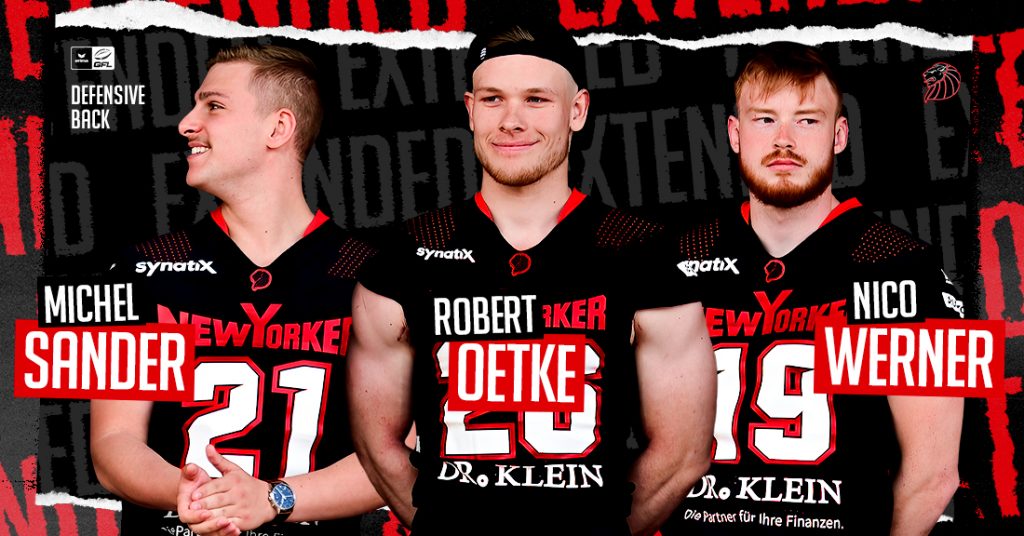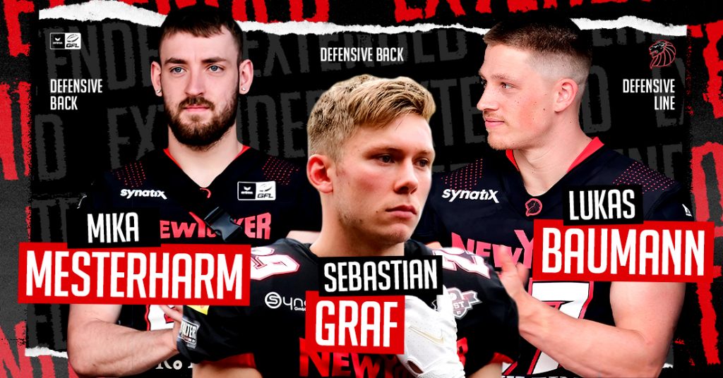 Mit den beiden Passverteidigern Sebastian Graf und Mika Mesterharm, sowie Defense Line Spieler Lukas Baumann, bleiben drei weitere Spieler aus 2022, auch 2023 ein Teil der New Yorker Lions. SEBASTIAN GRAF Der 23-jährige Sebastian Graf begann 2017 in der Jugend der Benefeld Black Sharks. Über die Jugend der Paderborn Dolphins, mit denen er 2019 den […]