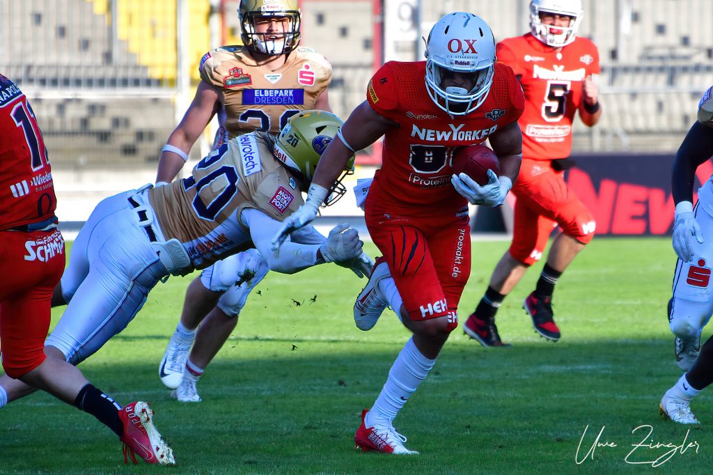 Bei hochsommerlichen Temperaturen im Dresdener Heinz-Steyer-Stadion unterliegen dieNew Yorker Lions, in einem phasenweise hochklassigen Spiel, den Dresden Monarchs knapp mit 24:19 (7:0; 10:13; 0:0; 7:6).Bei Temperaturen weit über 30 ° C auf dem Rasen des Heinz-Steyer-Stadion und strahlend blauen Himmel, legten die Gastgeber, nachdem Kick-Off der Lions durch Tobias Goebel, los wie die Feuerwehr. Mit […]