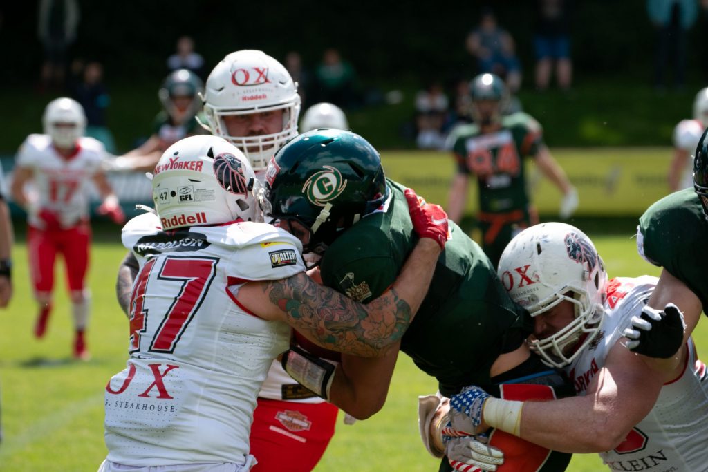In einem Spiel, was zur Halbzeit schon entschieden schien, kämpfen sich die New Yorker Lions noch einmal zurück und verlieren nur knapp mit 27:35 (0:7; 7:21; 6:0; 14:7). Schon vor dem Anpfiff der Partie stand das Spiel unter keinem guten Stern, mussten die Lions doch verletzungsbedingt auf einige wichtige Spieler verzichten. So fehlten den Hausherren […]
