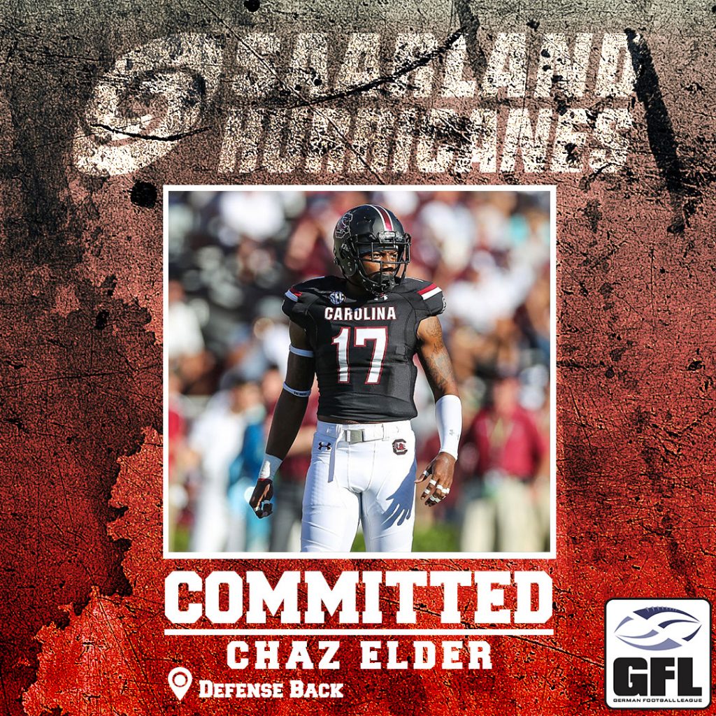 Mit Chaz Elder können wir den nächsten hochkarätigen Neuzugang mit D1 Erfahrung vermelden. Der 188 cm große Modellathlet von den South Carolina Gamecocks wird uns auf der Safety-Position verstärken, kann aber auch als Cornerback eingesetzt werden. Herzlich willkommen Chaz