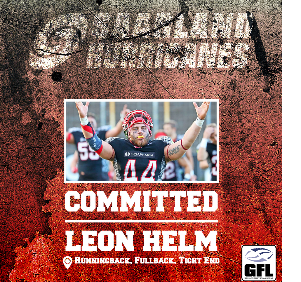 Nachdem Leon in der letzten Saison eigentlich für Frankfurt Universe auflaufen wollte, stand er in dieser Saison vor der Wahl entweder zu einem ELF Team oder zu einem GFL Team zu wechseln. Wir sind sehr froh, dass sich der mehrmalige Jugend und Herren Nationalspieler wieder für die Saarland Hurricanes entschieden hat.