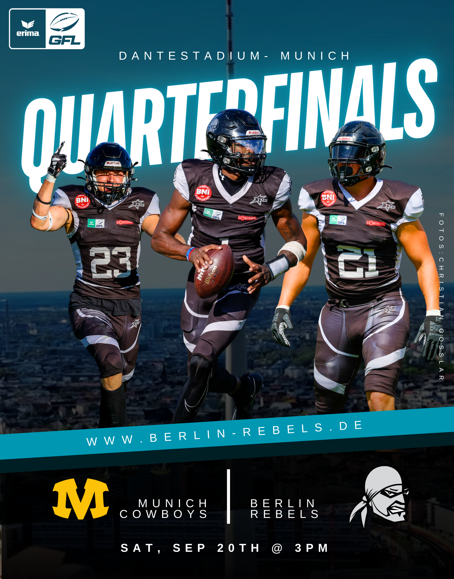 Am kommenden Samstag könnten die Berlin Rebels für sich selbst Geschichte schreiben, und zum ersten Mal ein Playoff- Spiel gewinnen und ins Halbfinale einziehen.