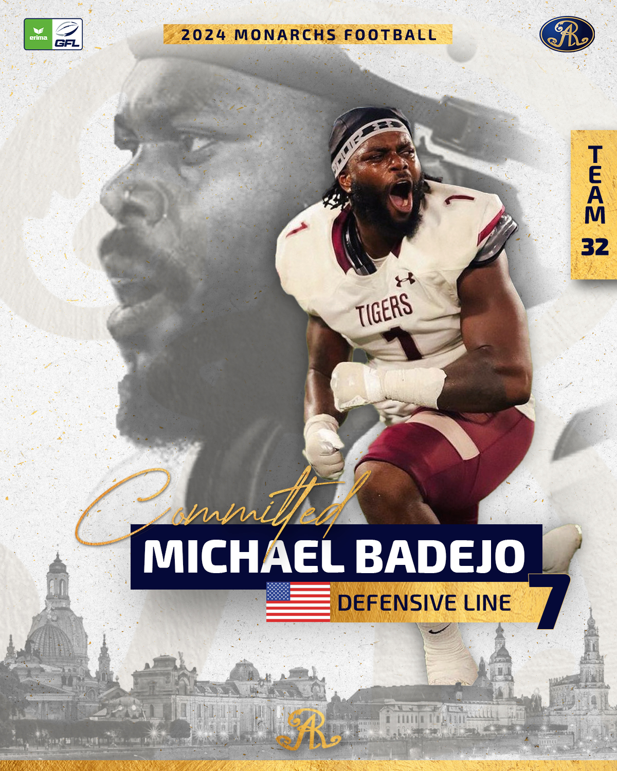 Badejo sollte auch für die MLFB spielen und unterschrieb bei der Arkansas Attack. Allerdings wurde die MLFB noch vor Beginn seiner ersten regulären Saison aufgelöst und so spielte er schließlich für die San Diego Strike Force in der Indoor Football League (IFL). Hier startete er in 14 der insgesamt 15 Spiele der regulären Saison 2023. Insgesamt verzeichnete der Defensive Lineman in San Diego 38 Tackles, davon 7,5 Tackles für einen Raumverlust, 3,5 Sacks und 3 Forced Fumbles. Starke Werte, die auch die Dresden Monarchs von dem Amerikaner überzeugten. Mit Michael Badejo steht damit die erste internationale Neuverpflichtung 2024 fest. Willkommen in Dresden.