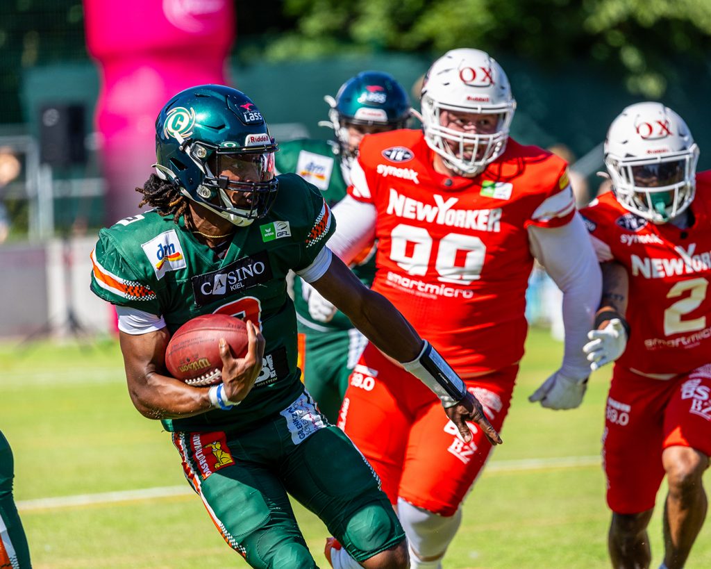 Bei bestem Footballwetter im Kieler Kilia-Stadium, entwickelte sich nach einer rabenschwarzen ersten Halbzeit für die New Yorker Lions, ein Krimi auf Augenhöhe.Final hatten die Braunschweiger, trotz Aufholjagd in der zweiten Spielhälfte, das Nachsehen und verloren knapp mit 28:27 (7:0; 7:0, 0:7; 14:20) gegen die Kiel Baltic Hurricanes. Die Gastgeber begannen die Partie mit dem Kick-off […]