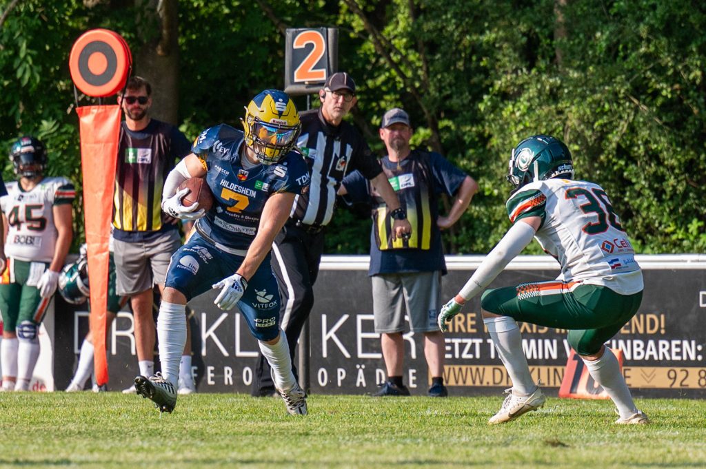 Kiel, 15.06.2025 – Nach dem 2-Punkte-Krimi im Hinspiel vor zwei Wochen in Kiel sollte das Rückspiel zwischen den Kiel Baltic Hurricanes und den Hildesheim Invaders zu einem Thriller werden. Bei sengender Hitze in Hildesheim entschieden die Canes das Spiel schließlich mit 21:20 (7:7/0:0/7:0/7:13) für sich und holten den ersehnten zweiten Bundesliga-Sieg in dieser Saison. „Wir […]