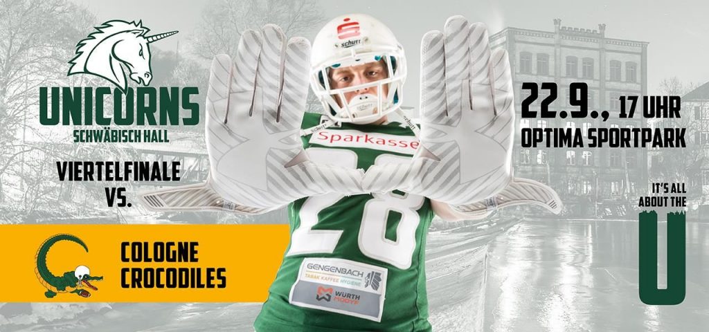 Die Playoff-Zeit beginnt! Am kommenden Samstag empfangen die Schwäbisch Hall Unicorns beim 11teamsports-Gameday im OPTIMA Sportpark um 17:00 Uhr die Cologne Crocodiles. Es geht um alles oder nichts: Der Sieger zieht ins Halbfinale ein, für den Verlierer ist die Saison 2018 zu Ende. Als ungeschlagener Südmeister und amtierender Deutscher Meister gehen die Unicorns am Samstag […]
