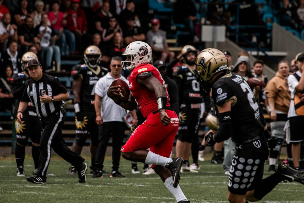 Als Chris Lipsey den finalen Pass der Allgäu Comets abfing mit wenigen Sekunden auf der Uhr, brachen an der Straubinger Sideline endgültig alle Dämme. Diese Interception sicherte den zweiten Auswärtssieg in Folge und sorgte dafür, dass die Spiders erstmals seit der Saison 2022 wieder auf dem zweiten Platz der GFL Süd platziert sind. Die Vorlage […]