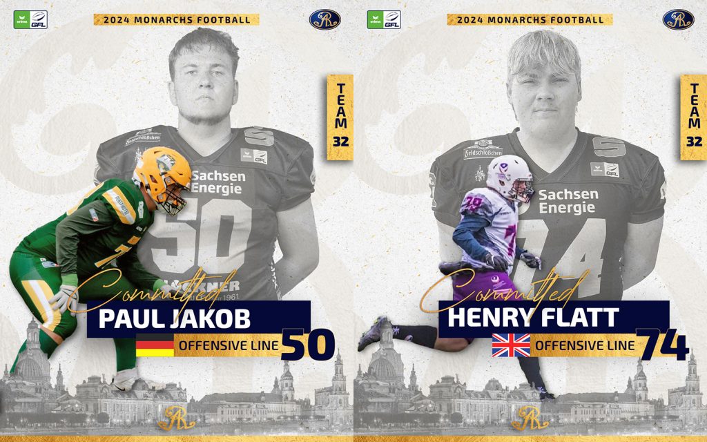 Henry Flatt und Paul Jakob sorgen für mehr Tiefe und Breite in der Offense Weiterer Neuzugang für die Offense der Dresden Monarchs. Die Königlichen haben in den vergangenen Wochen noch nach Verstärkung für die O-Line gesucht und sind in Großbritannien fündig geworden. Henry Flatt soll in dieser Saison helfen, die ambitionierten Ziele zu erreichen. Der […]