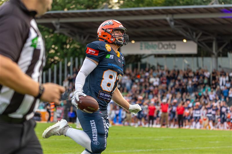 Vor mehr als 1.500 Zuschauern im TeleData Stadion am Lindenhof haben die ifm Razorbacks Ravensburg am Samstagabend ein echtes Ausrufezeichen gesetzt: Mit einem beeindruckenden 56:21-Sieg gegen die Pforzheim Wilddogs übernehmen die Oberschwaben die Tabellenführung in der Südgruppe der ERIMA GFL 1 und machen die Playoff-Teilnahme endgültig perfekt. Schon die Rahmenbedingungen hätten kaum besser sein können: […]