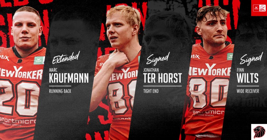 Mit dem Rückkehrer Runningback Marc Kaufmann, sowie den beiden Neuzugängen Wide Receiver / Tight Ends Finn Wilts und Jonathan ter Horst, erhält der Angriff der Lions weitere Verstärkung und Kadertiefe. Marc Kaufmann Mit dem 21-jährigen Marc Kaufmann, schloss sich 2023 ein hoffnungsvolles Nachwuchstalent dem Team der New Yorker Lions an. Der 1,70 m große und […]