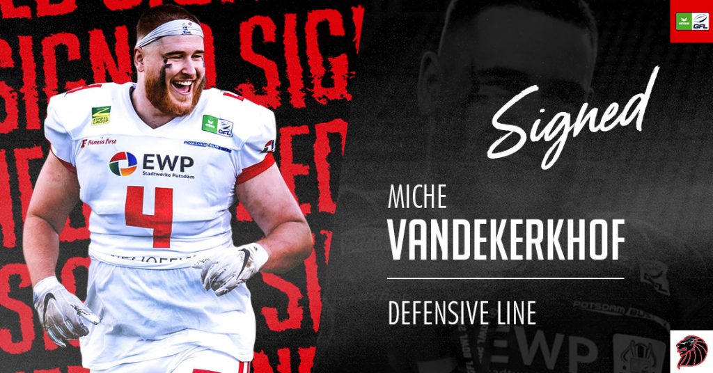 Weitere tatkräftige Verstärkung erhält die Defense Line der New Yorker Lions für die Erima-GFL Saison 2024, in Person von Miche Vandekerkhof. Der 24-jährige Belgier kommt mit dem deutschen Meistertitel nach Braunschweig, den er im Oktober letzten Jahres, mit den Potsdam Royals im Germanbowl in Essen, gegen die Schwäbisch Hall Unicorns gewinnen konnte. Der mit einem […]