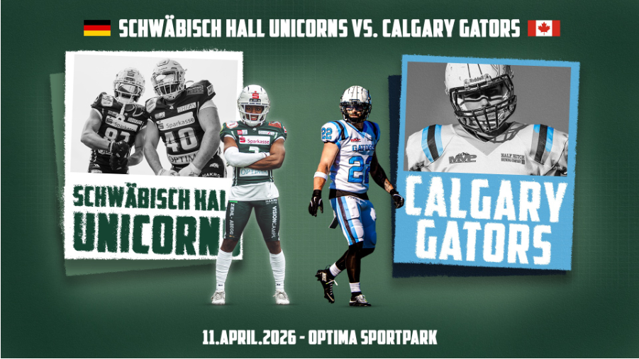 Nach den Osterfeiertagen wartet direkt ein besonderer Höhepunkt auf die Haller Football-Fans. Mit den Calgary Gators gastiert im Rahmen ihrer Europareise der amtierende kanadische Meister in der Kocherstadt und sorgt für internationales Flair beim ersten Auftritt der Unicorns vor heimischem Publikum.