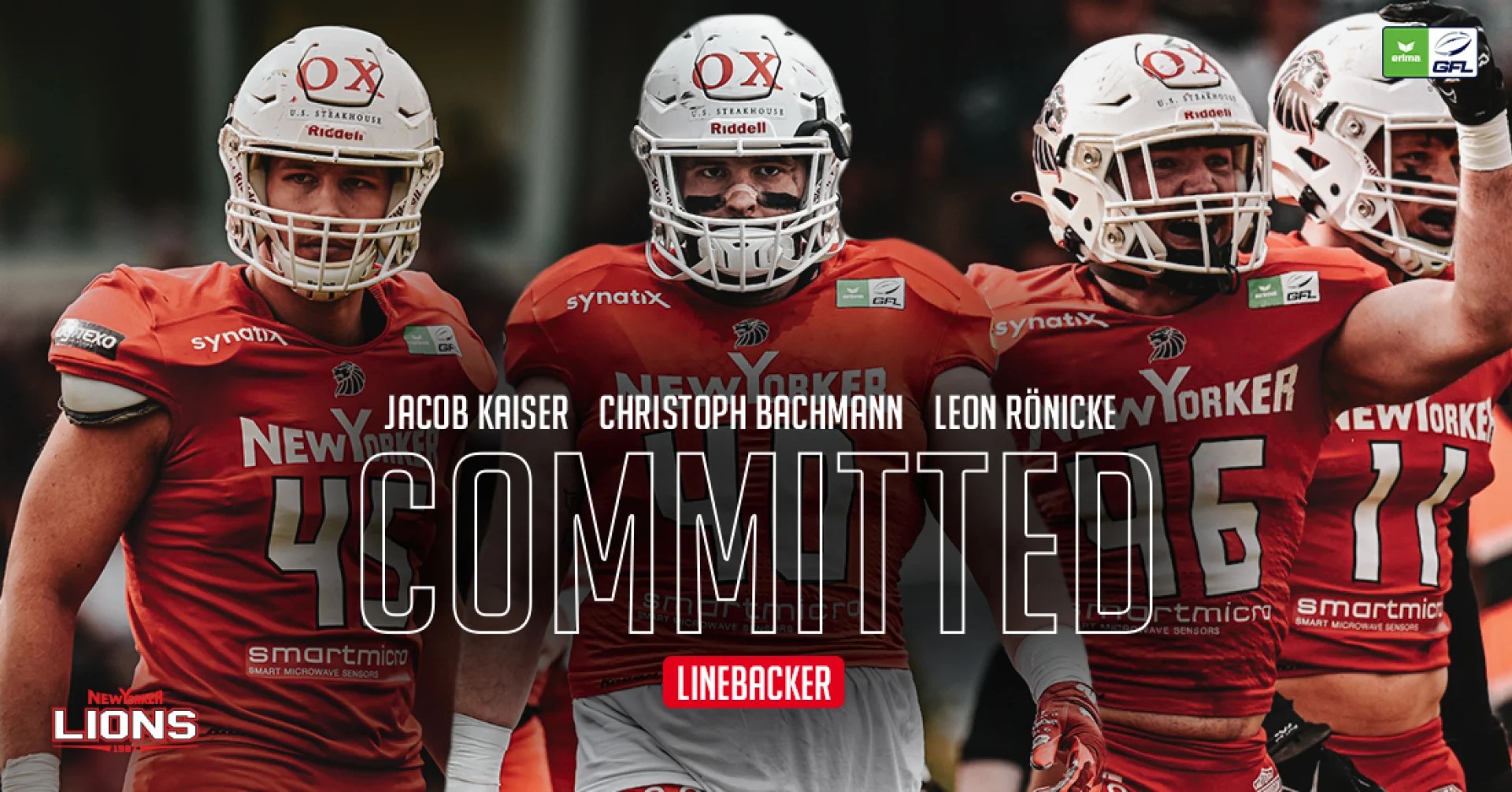 Mit Jacob Kaiser, Christoph Bachmann und Leon Rönicke, bleiben weitere Verteidiger auch in der Erima GFL 2025, dem Linebacker-Corps der New Yorker Lions treu.