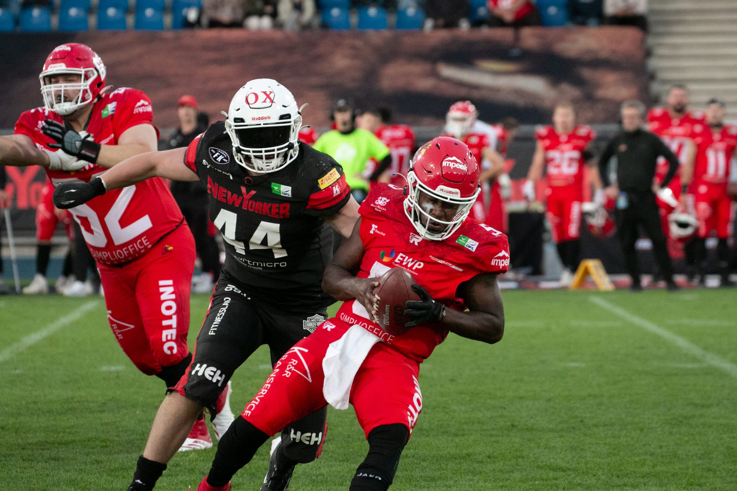 Der Angriff der Braunschweiger hingegen hatte weiterhin Probleme, sich ihrerseits aus der Umklammerung der Gästeverteidigung zu lösen. So dauerte es bis zwei Minuten vor Schluss, ehe Runningback Marc Kaufmann eine Lücke in der Verteidigung der Gäste fand und mit einem 97 Yard Lauf nicht nur den 13:36 (PAT L. Jeckstadt) Endstand, sondern auch gleichzeitig einen neuen Rekord in den Annalen der Löwen, mit dem bisher längsten Touchdownlauf der Geschichte aufstellte und damit Christopher McClendon (90 Yards, 2019), auf Platz zwei verdrängte.