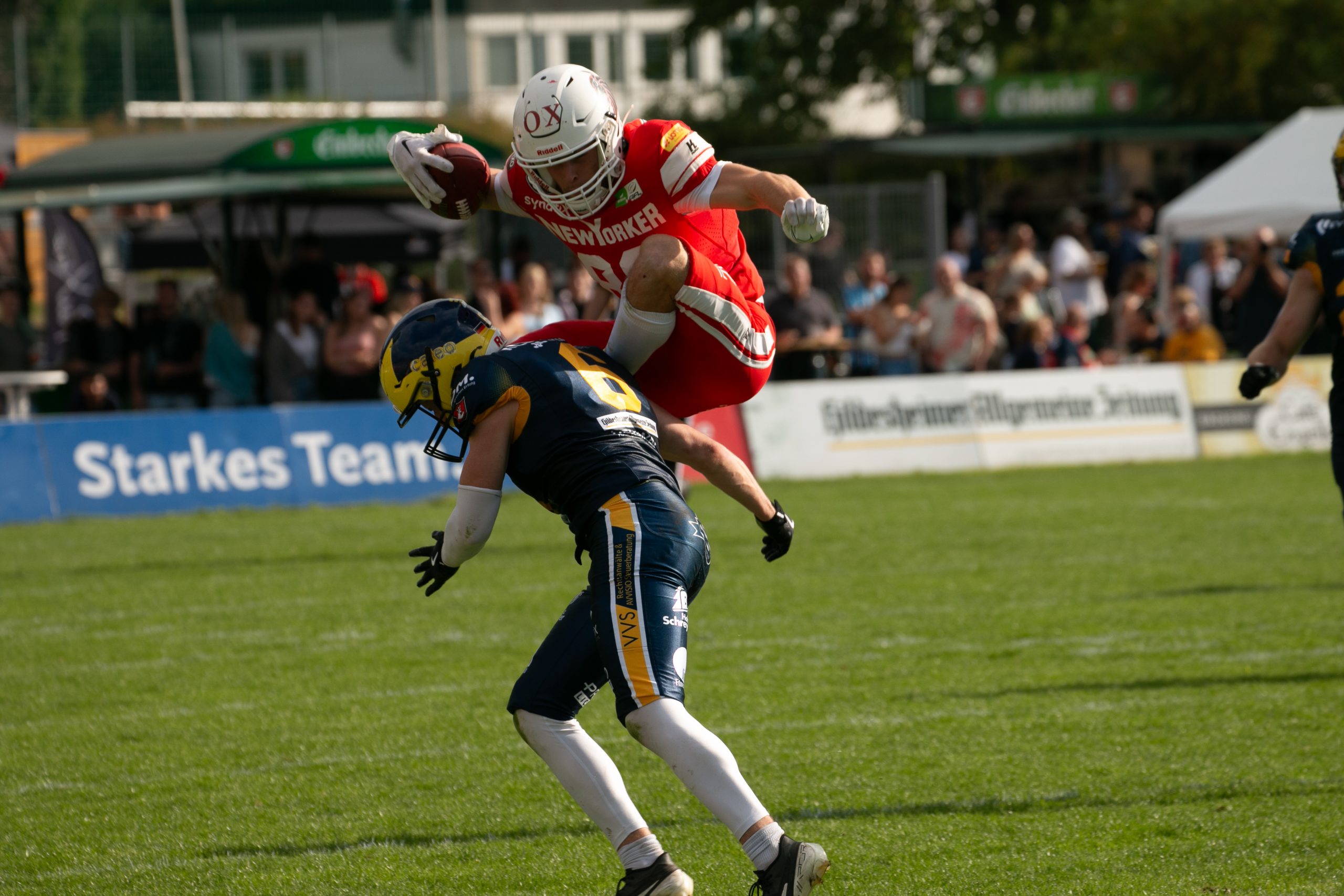 Bestes Footballwetter und eine tolle Atmosphäre im Hildesheimer Friedrich-Ebert-Stadion, waren die Voraussetzungen für den klaren und ungefährdeten 10:34 (3:6; 0:14; 7:7; 0:7) Sieg der New Yorker Lions, im Niedersachsenduell gegen die Mannschaft der Hildesheim Invaders.