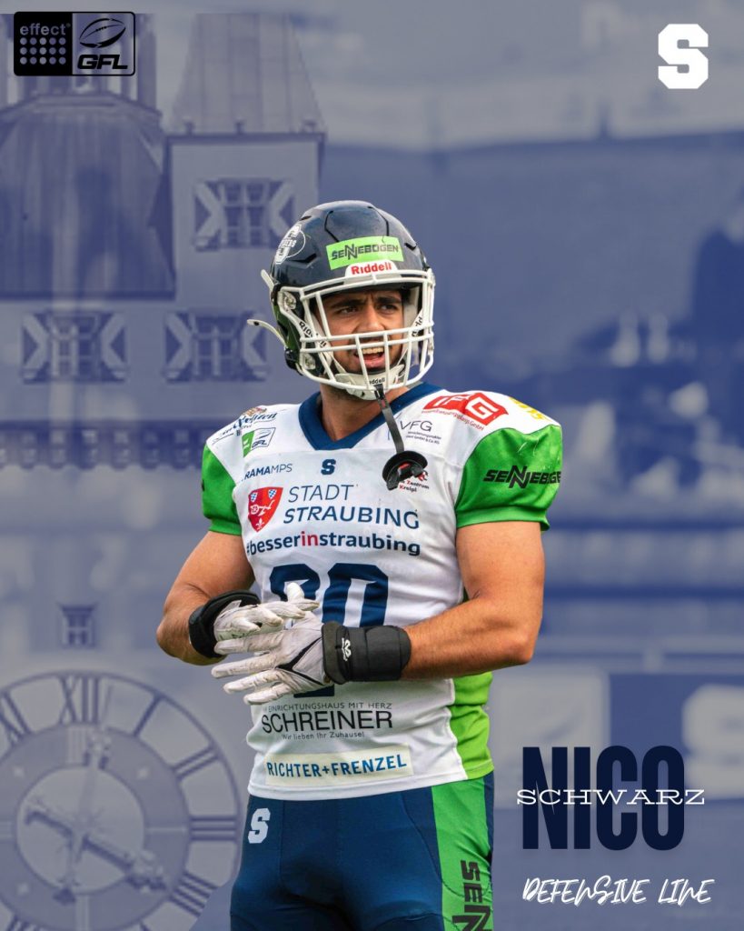 Die Straubing Spiders können weiterhin auf die Dienste von Defensive Lineman Nicolai Schwarz zählen. Der 1,92 Meter große und 108 Kilogramm schwere Verteidiger geht auch in der Saison 2026 für das Team in der Effect Energy GFL auf den Platz und bringt dabei nicht nur Physis, sondern auch wertvolle Erfahrung aus den vergangenen Jahren mit.