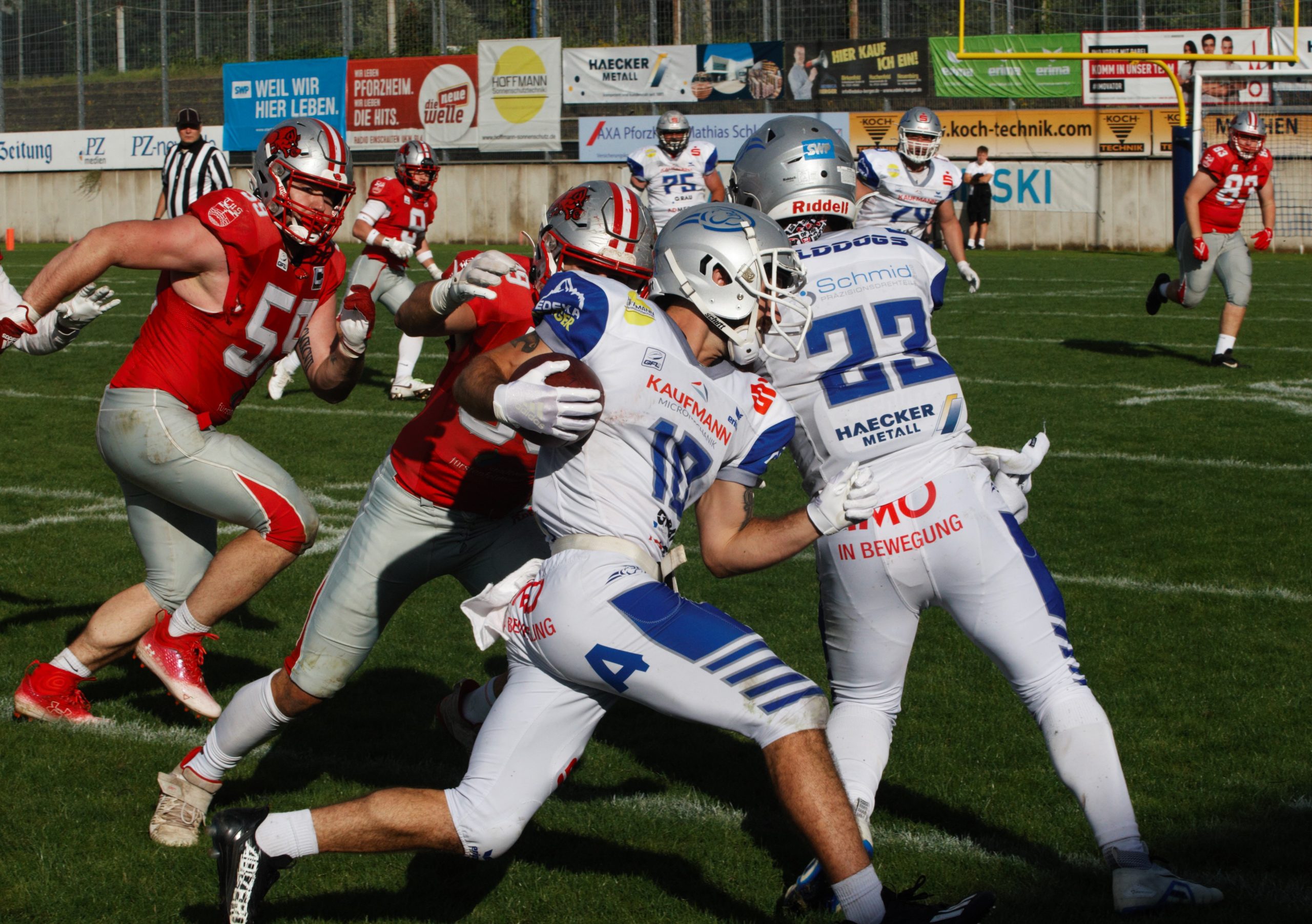 Da waren es nur noch zwei. Zwei Auswärtsspiele noch bis zum Saisonfinale in der Kramski-Arena. Wenn die Saison so weitergeht wie bisher, findet am letzten Spieltag am 7. September das Spiel um den Aufstieg zwischen den Montabaur Fighting Farmers und den Pforzheim Wilddogs statt. Auf dem Weg dahin müssen die Wilddogs jedoch erst einmal in Fürstenfeldbruck am kommenden Samstag abliefern. Nach dem 44:15 im Hinspiel liegt die Favoritenrolle bei den Wilddogs.