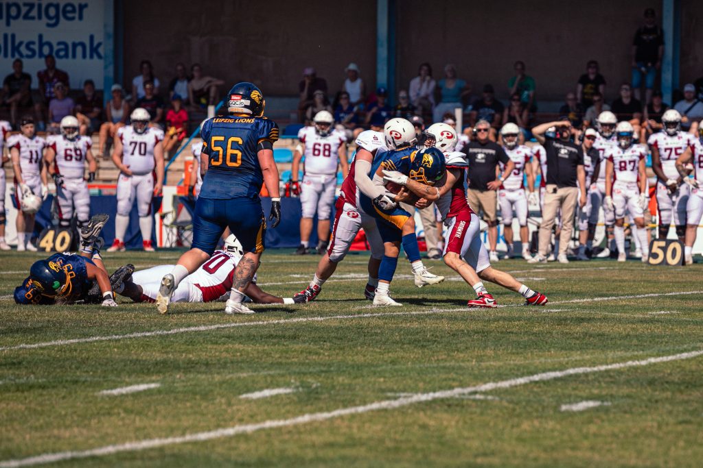 Am Samstag traten die Pioneers zum Spiel in Leipzig bei den Lions an. Bei über 30 Grad war es das zweite Spiel bei Hitze für die Pioneers. Die Pioneers brachten in der ersten Hälfte den Ball durch ihr Kickoff-Team ins Spiel. Nach einem Touchback startete die Leipziger Offense an der eigenen 25 mit dem ersten […]