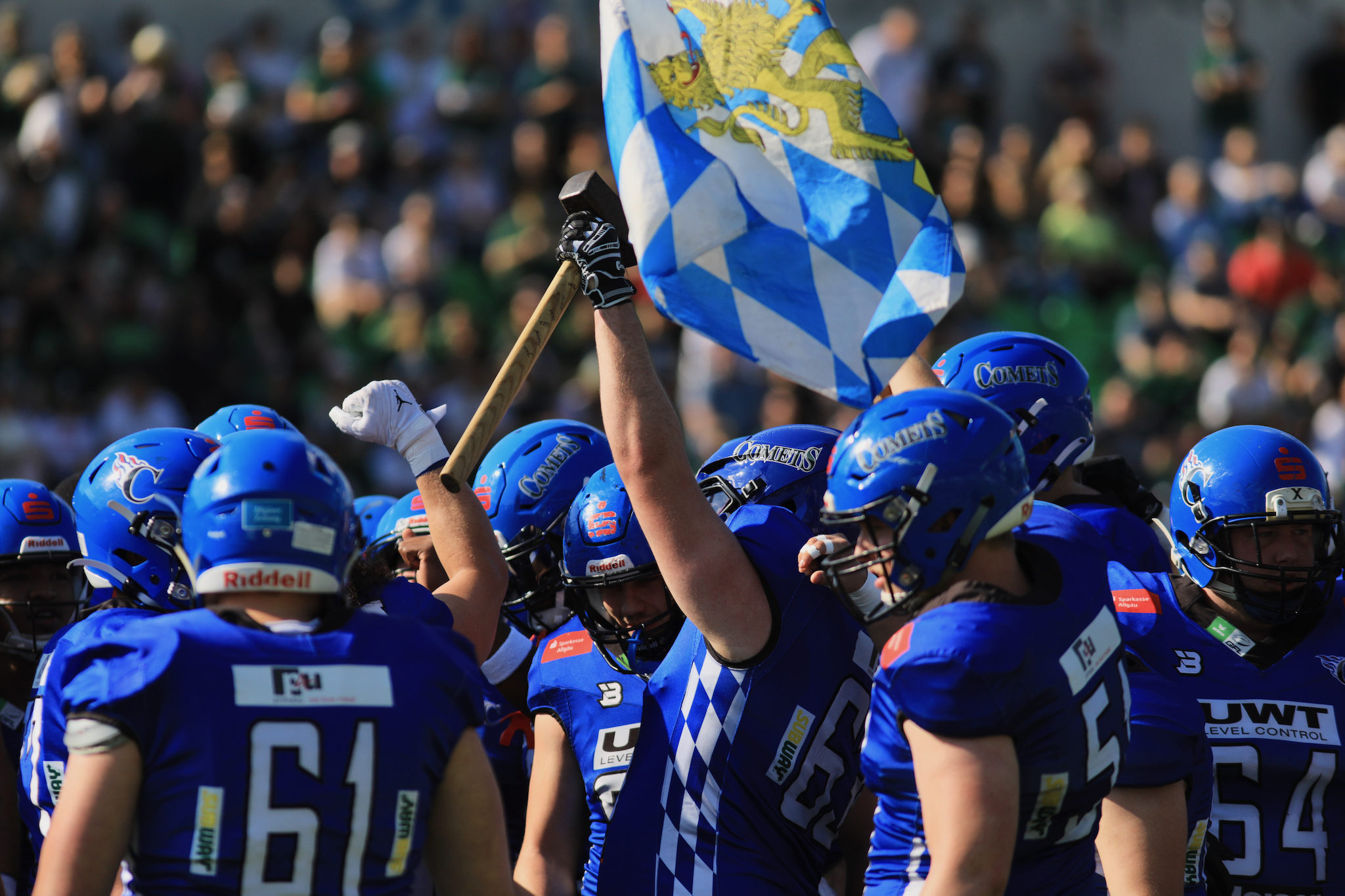 Nachdem man Hall endlich einmal in Schlagdistanz hatte – wobei schon in früheren Jahren die Comets zu den wenigen Teams gehörten, die Hall einiges abverlangten – schmerzt die hauchdünnen Niederlage natürlich. Aber während auf Seiten der Special Teams und der Defense noch Verbesserungspotential besteht – was die Comets aber nur sportlich im Trainingsbetrieb adressieren können, ein “Zukauf” von Spielern wie das bei finanziell besser ausgestatteten Teams üblich ist, kommt für die knapp kalkulierenden Allgäuer leider nicht in Frage – ist das Offensekonzept von Headcoach Elias Gniffke voll aufgegangen. Mit der richtigen Spieltaktik und einem hervorragendem Kader aus vielen jungen Talenten haben die Comets schon zu Saisonbeginn die richtige Duftmarke gesetzt. Wermutstropfen bleibt bei der Begegnung auch die Verletzung von DB Jerome Brooks, der zur Behandlung zwischenzeitlich ins örtliche Krankenhaus musste, aber die Heimreise im Teambus dann wieder antreten konnte. Gute Besserung – Get well soon!