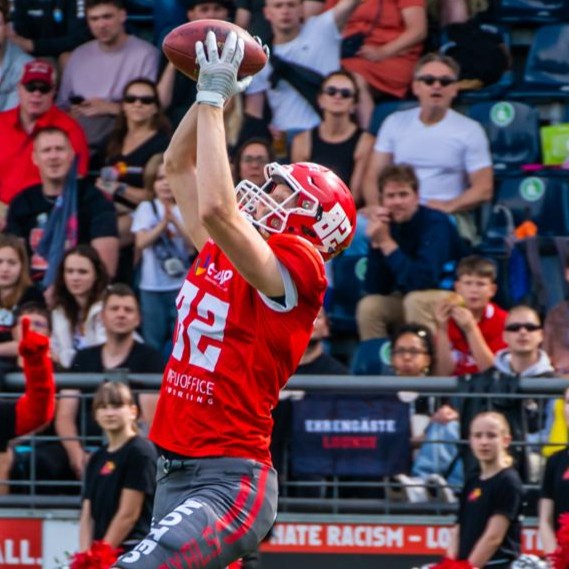Seine Football-Reise begann bereits im Alter von neun Jahren bei den Erding Bulls. Schnell wurde klar, dass hier ein außergewöhnliches Talent heranwächst. Spätestens in Potsdam machte Güther dann den nächsten großen Schritt. 2022 dominierte er den Jugendbereich und wurde nicht nur Meister, sondern auch als Team MVP ausgezeichnet. Mit beeindruckenden Statistiken auf beiden Seiten des Balls unterstrich er sein enormes Potenzial. Ein Jahr später folgte als Rookie im Herrenbereich der nächste Meilenstein: der Gewinn des GFL Bowls mit den Potsdam Royals.