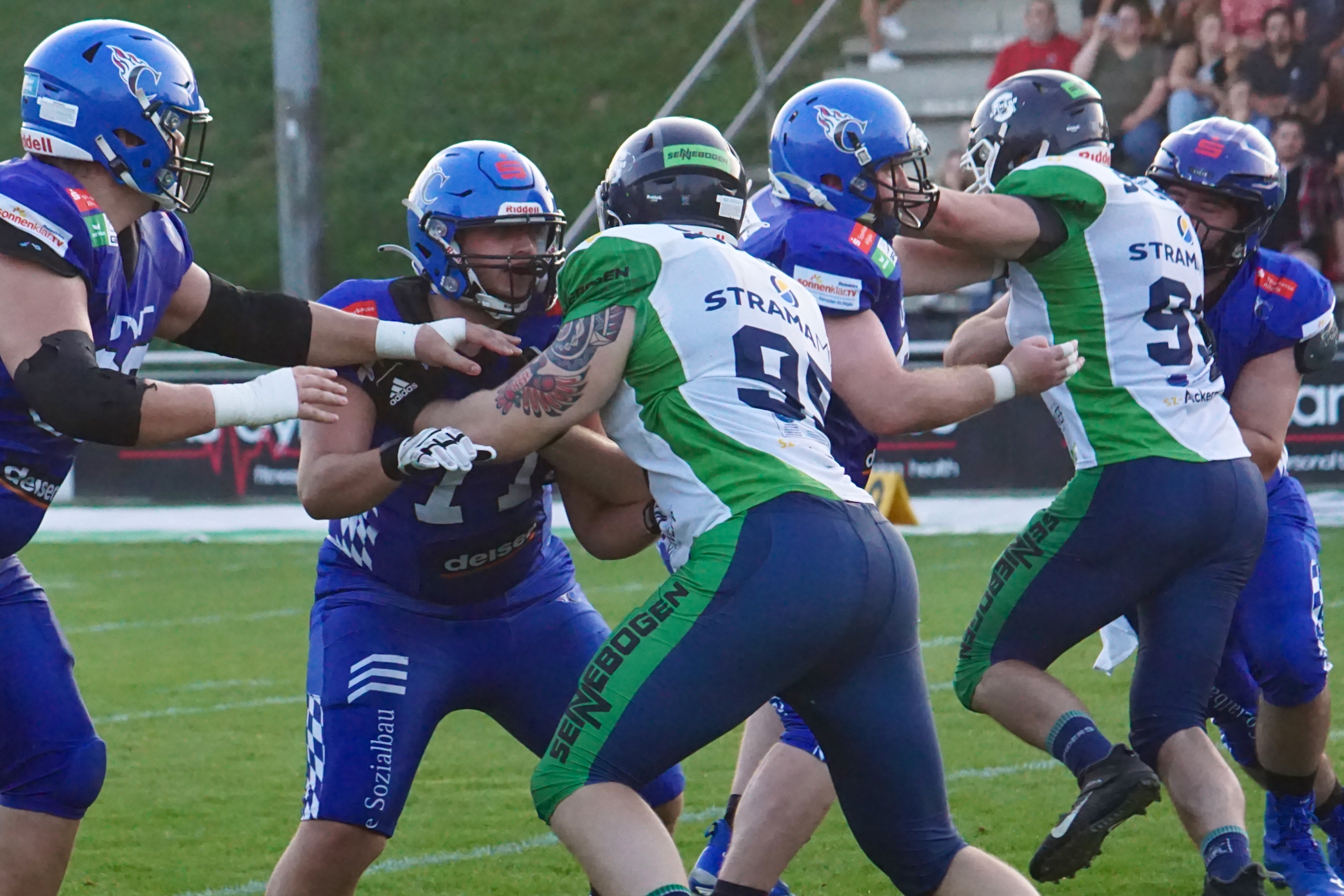 Wieder nach Straubing, Niederbayern im August und die gleiche Hitze wie schon 2023. Diesmal aber mit erträglicher Perspektive, denn der späte Kickoff um 19:00 sorgte dafür, dass die Sonne schon sehr tief stand und der Platz bald komplett im Schatten lag. Vergangenes Jahr hatte das Wetter viele Comets-Spieler an den Rand des Hitzschlags gebracht, nur die Hilfe des mitgereisten Fanclubs sorgte für etwas Schatten an der Sideline.
