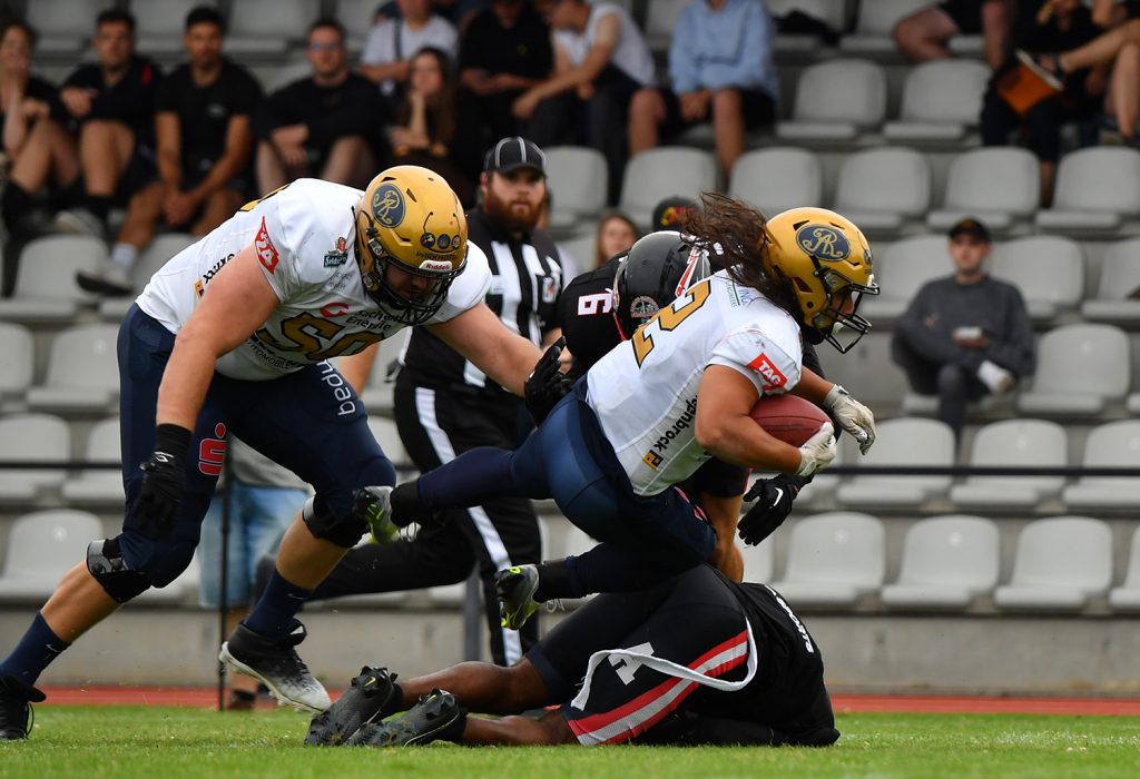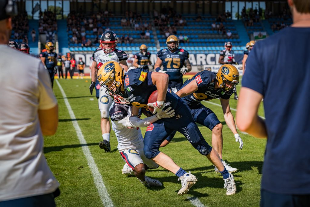 Die Dresden Monarchs sind bekannt für ihre dominanten Siege, die sie in den ersten sechs Saisonspielen mit beeindruckenden Punktedifferenzen von 28, 27, 28, 42, 28 und 26 Zählern einfuhren. Doch im TeleData-Stadion trafen sie vor 1.273 Zuschauern auf einen unerwartet zähen Gegner: die ifm Razorbacks Ravensburg. Auch wenn die Monarchs am Ende mit 49:33 gewannen, […]