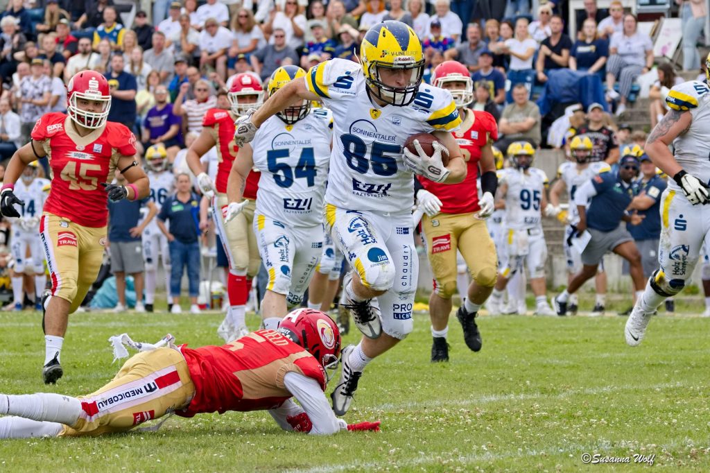 Die Marburger mussten bei den Allgäu Comets eine deutliche 56:20 Niederlage einstecken. Dabei war das einzige hessische GFL-Team mit einigen Hoffnungen angereist. Die Woche zuvor hatten sie überraschend die Ingolstadt Dukes mit 27:24 besiegen können und auch beim Hinspiel mussten sich die Mercenaries den Comets mit 21:28 nur knapp geschlagen geben. Doch der Headcoach der Allgäuer, Elias […]