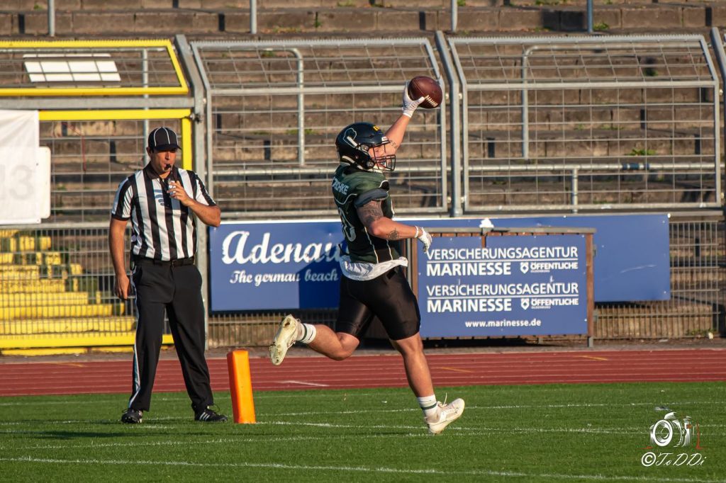 Lange musste Justus Marterer an diesem Samstag auf seinen Einsatz warten, aber dann zeigten er allen warum man ihn Anfang der Saison zurück an die Hunte geholt hatte. Mit zwei Touchdown-Pässen, sowie zwei selbst gelaufenen Touchdowns wurde er beim 34:21 Sieg gegen die Langenfeld Longhorns zum unbestrittenen Matchwinner an diesem Tag. Hierfür reichten ihm gerade […]
