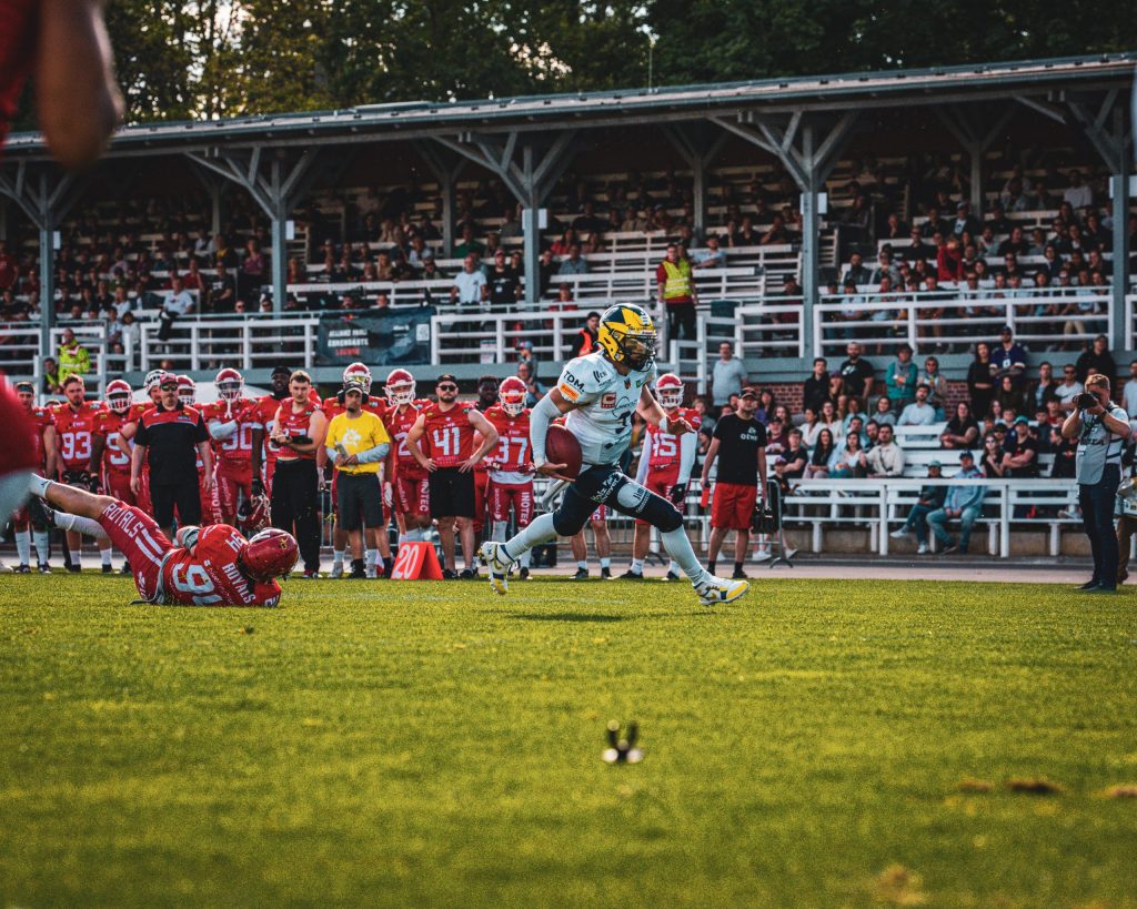 Potsdam/Hildesheim. Es war die Rückkehr der Hildesheim Invaders ins Football-Oberhaus. Gleich beim Deutschen Meister Potsdam Royals – und der erwies sich als der erwartet harte Brocken für den Aufsteiger aus Niedersachsen. 56:21 hieß es nach vier Vierteln im Stadion am Luftschiffhafen bei Sonnenschein. Zahlreiche mitgereiste Fans unterstützten ihren Aufsteiger. Meister-Quarterback Jaylon Henderson zeigte gleich zu […]