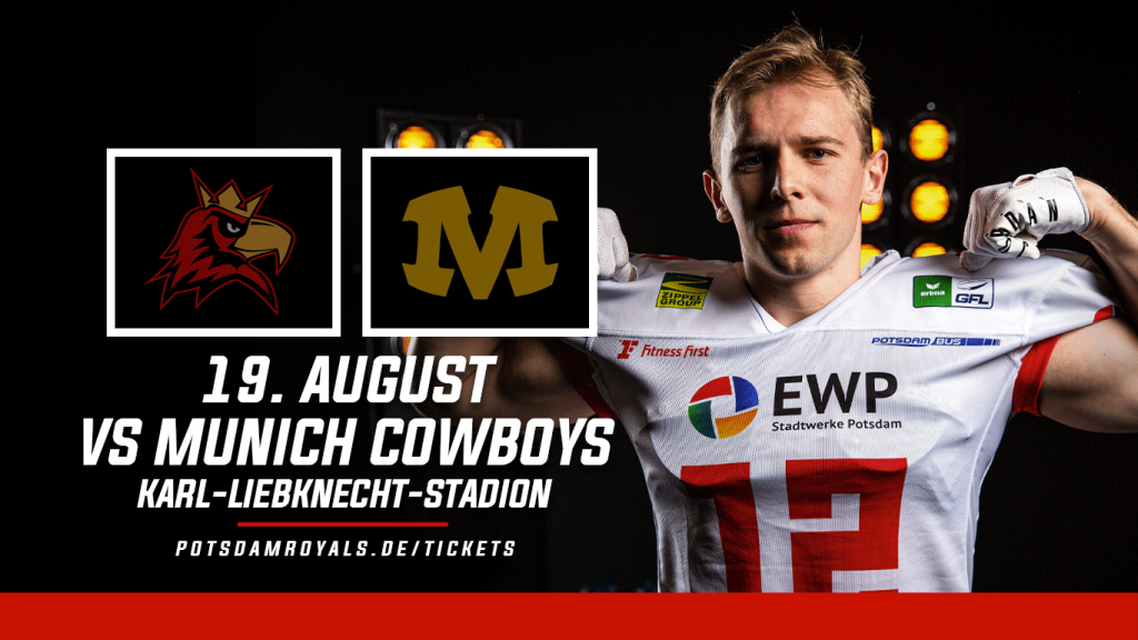 Zum ersten Heimspiel nach der Sommerpause empfangen die Potsdam Royals einen Gegner aus dem Süden im Karl-Liebknecht-Stadion. Die Munich Cowboys kommen als zweiter „Interconference“ Gegner nach Potsdam. In der Erima GFL-Süd heimisch sind die Cowboys ein Verein mit langer Geschichte: 1979 wurden die Cowboys, die sich selbst das „The Grand Old Team of the South” […]