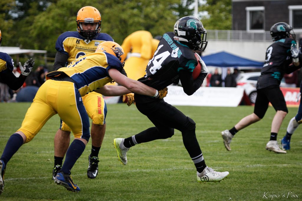Etabliertes GFL 2 Team gegen Aufsteiger. Was von der Papierform eine klare Angelegenheit zu werden schien, entwickelte sich beim Auswärtsspiel gegen die Troisdorf Jets zu einem harten Stück Arbeit für die Griffins. Personell nicht in Bestbesetzung angereist konnten die Greifen allerdings gleich im ersten Drive punkten. Nach einem langen Pass auf Chiam James war es RB Jermichael Selders, […]